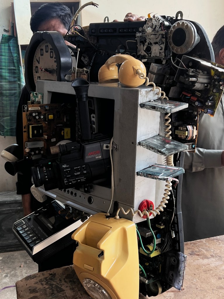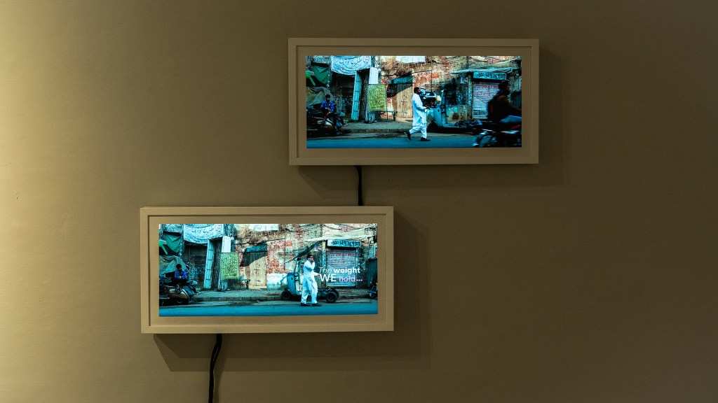 This piece is part of my undergraduate thesis project, BeingZ, which dissects South Asian Gen Z through past generations. Adding on to the sculpture (see previous post)The particular video art unit juxtaposes a modern phone with its individual components. the sculpture is 40 kg while the phone is a mere 120 grams. This piece aims to reflect the metaphorical and literal weight a phone carries in today’s world.