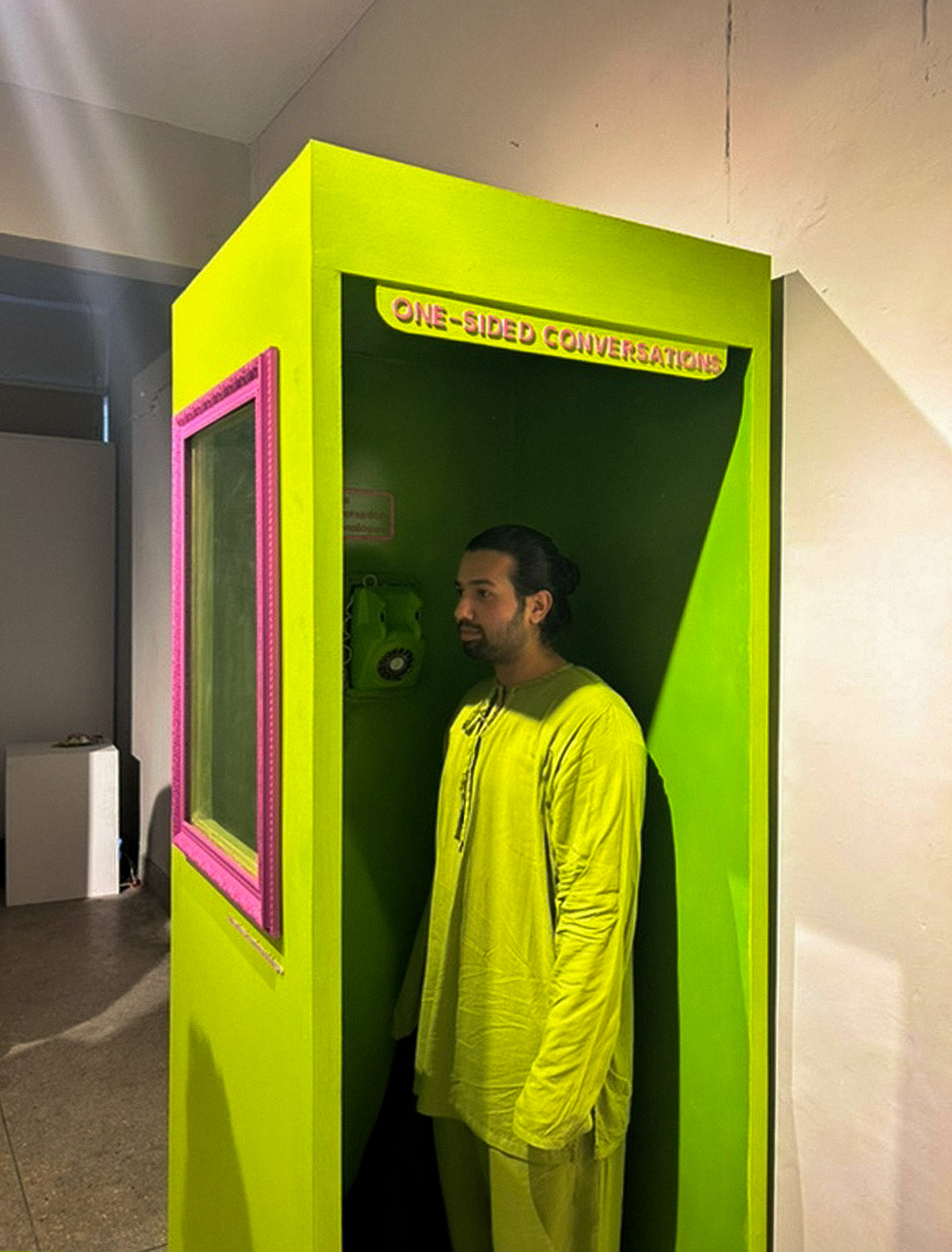 The booth is an experiential installation where visitors step inside, listen to a telephone, and confront the reality of how generational conversations have often been one-sided. The aim is simple: to end the monologue and start the dialogue.