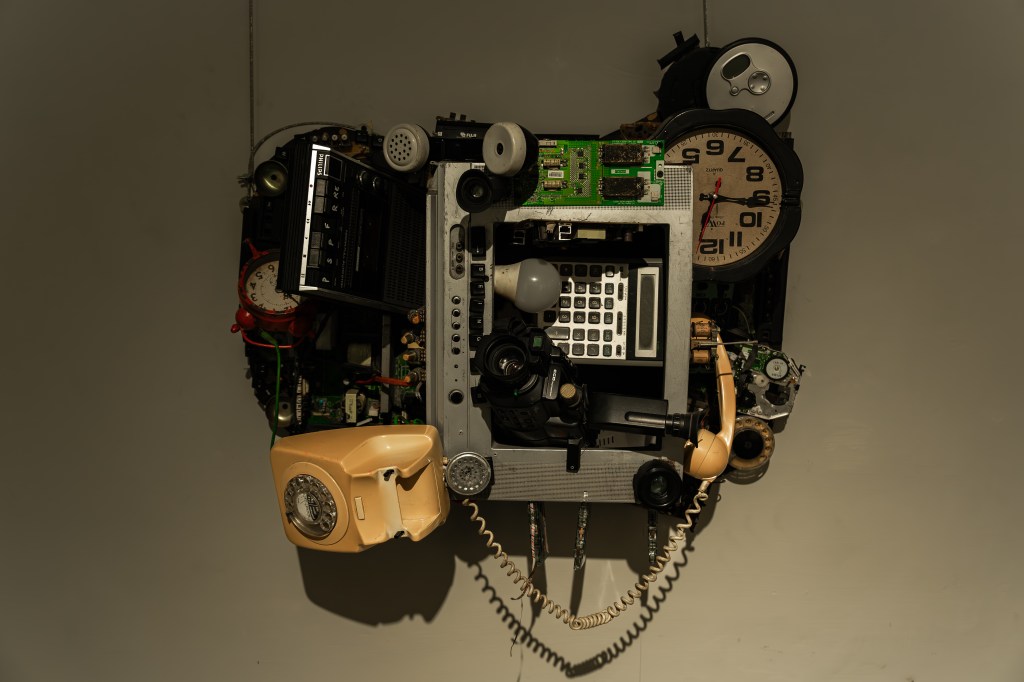 This sculpture is the first piece in my undergraduate thesis project, BeingZ, which dissects South Asian Gen Z through past generations. The particular sculpture juxtaposes a modern phone with its individual components—objects that once existed independently in various forms but are now condensed into a single, utility-driven device. This piece aims to reflect the metaphorical and literal weight a phone carries in today’s world.